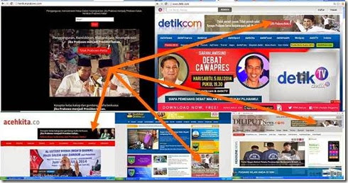 Dalam peraturan periklanan, Google menegaskan “The promotion of political candidates and political parties isn’t allowed to target Indonesia.”, peraturan tersebut bisa dilihat pada tautan berikuthttps://support.google.com/adwordspolicy/answer/1310914?hl=en. Namun ternyata iklan yang mendukung capres Joko Widodo santer beredar di situs-situs ternama seperti di Youtube. Sudah sebulan lalu, muncul sebuah video akan keluar iklan Joko Widodo terlebih dahulu. Lalu jika membuka situs lain, bisa dilihat iklan kampanye hitam yang diambil dari situs hentikanprabowo.com.