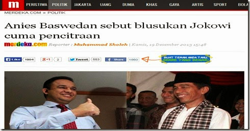 Anda mengkritisi dan melemahkan program blusukan Jolowi karena lebih kuat publikasinya daripada hasilnya. Ternyata … Sekarang anda mendukung Jokowi habis-habisan bahkan anda sinis kepada Prabowo tanpa dasar.